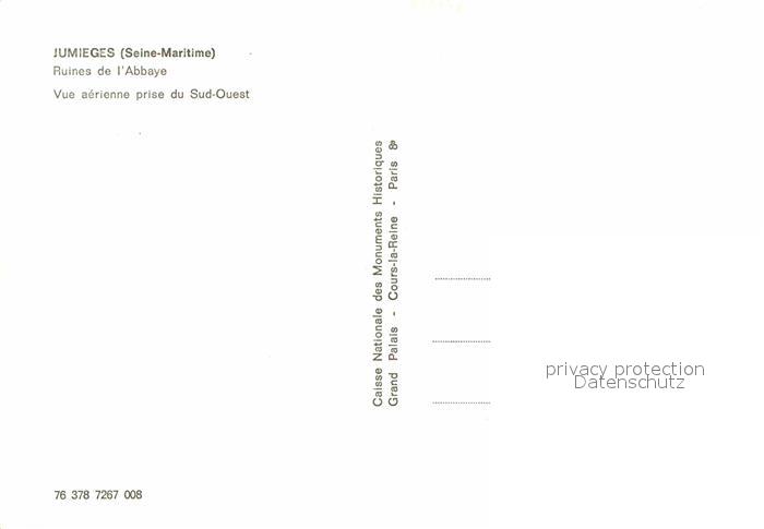 12839379 Jumieges Ruines de l’Abbaye vue aerienne postalisch nicht gelaufen Erhaltung siehe scans [FriedD77] KatCode: 11170076376378