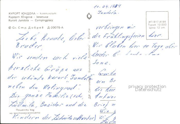 Jundola Campingplatz Kurort postalisch nicht gelaufen Erhaltung siehe scans