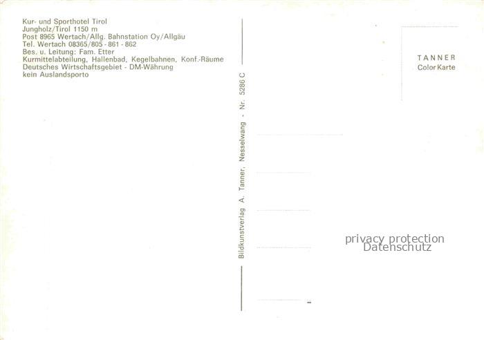 74152564 Jungholz Ausserfern Tirol AT Kur und Sporthotel Tirol Gastraum postalisch nicht gelaufen Erhaltung siehe scans [WerneD78] KatCode: 11390331070818