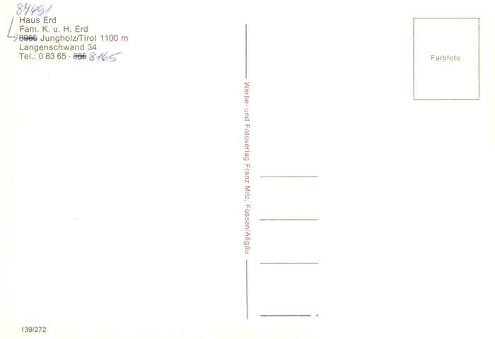 Jungholz Tirol AT Gaestehaus Pension Haus Erd Landschaftspanorama Alpen postalisch nicht gelaufen Erhaltung siehe scans [FriedD77]