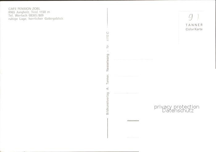 72400215 Jungholz Tirol Cafe Pension Zobl postalisch nicht gelaufen Erhaltung siehe scans KatCode: 11390331070818