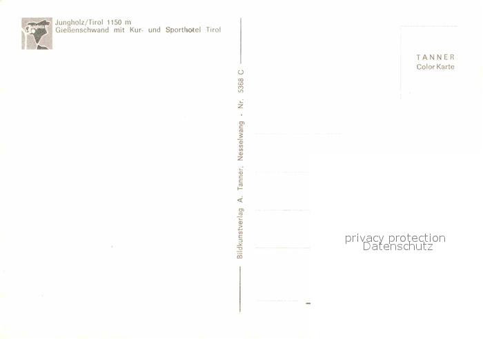 72883965 Jungholz Tirol Giessenschwand mit Kur und Sporthotel Tirol postalisch nicht gelaufen Erhaltung siehe scans [FriedD77] KatCode: 11390331070818