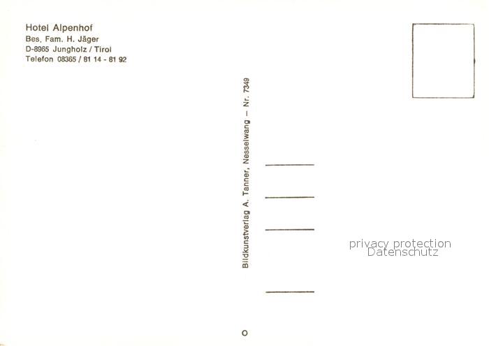 12951241 Jungholz Tirol Hotel Alpenhof postalisch nicht gelaufen Erhaltung siehe scans [NatalD47] KatCode: 11390331070818