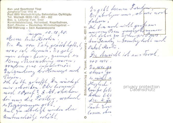 72614393 Jungholz Tirol Kur- und Sporthotel Tirol postalisch nicht gelaufen Erhaltung siehe scans [LiesaD40] KatCode: 11390331070818