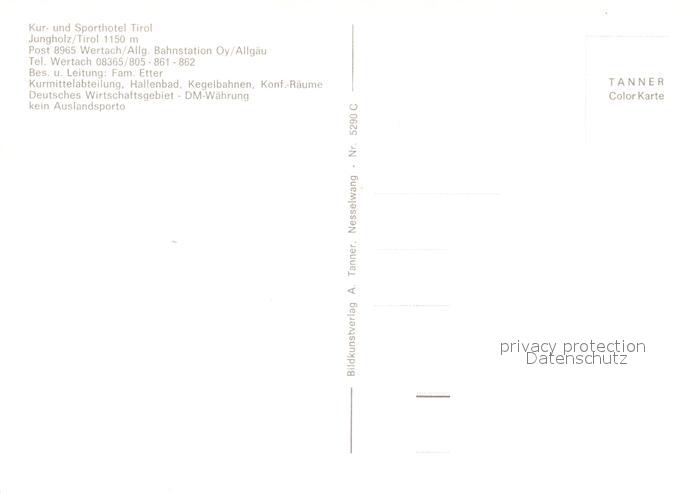 73512253 Jungholz Tirol Kur und Sporthotel Tirol postalisch nicht gelaufen Erhaltung siehe scans [WerneD78] KatCode: 11390331070818