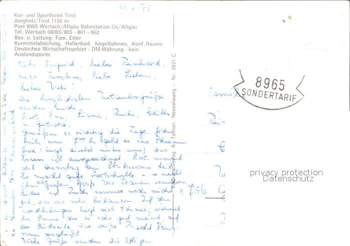 72614392 alte Postkarte Jungholz Tirol Kur- und Sporthotel postalisch gelaufen Erhaltung siehe scans [LiesaD40] KatCode: 11390331070818