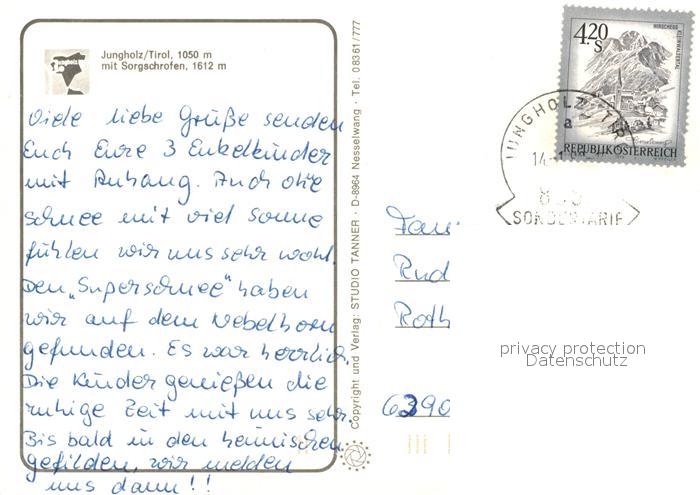 73120147 alte Postkarte Jungholz Tirol Sorgschrofen Winterpanorama postalisch gelaufen Erhaltung siehe scans [KathaD81] KatCode: 11390331070818