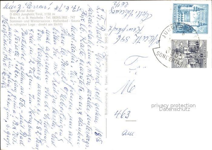 72011447 alte Postkarte Jungholz Tirol Sporthotel Adler postalisch gelaufen Erhaltung siehe scans KatCode: 11390331070818