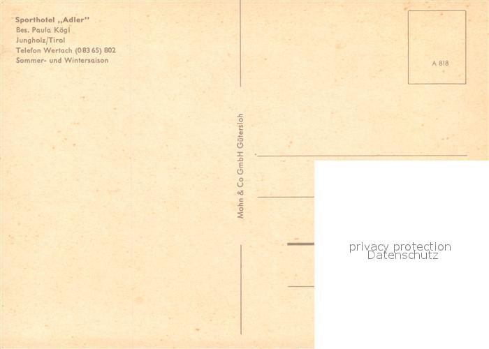 13192508 Jungholz Tirol Sporthotel Adler postalisch nicht gelaufen Erhaltung siehe scans [PaolaD17] KatCode: 11390331070818