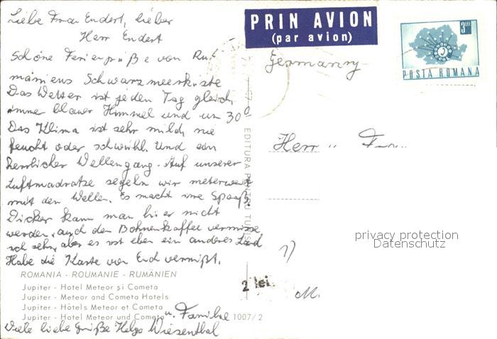 old postcard Jupiter Rumaenien Hotel Meteor si Cometa postalisch gelaufen Erhaltung siehe scans