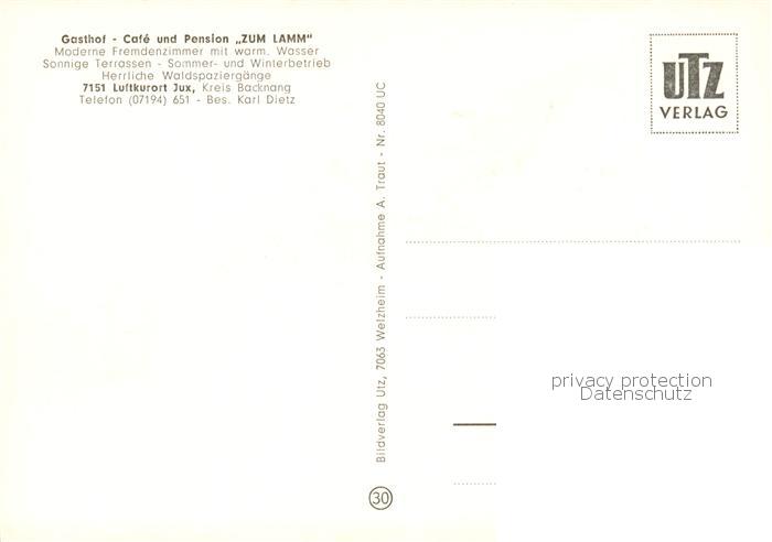 73854473 Jux Gasthof Cafe Zum Lamm postalisch nicht gelaufen Erhaltung siehe scans [WerneD78] KatCode: 11110008119069