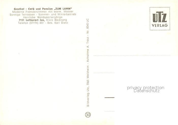 73854474 Jux Gasthof Pension Zum Lamm postalisch nicht gelaufen Erhaltung siehe scans [WerneD78] KatCode: 11110008119069
