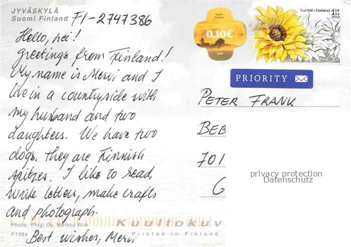 74005835 old postcard Jyvaeskylae Ansicht vom Wasser aus Fontaene Bruecke Kirche postalisch gelaufen Erhaltung siehe scans [FriedD77] KatCode: 11160