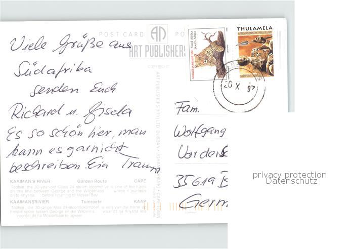 old postcard Kaaimans River Eisenbahnbruecke postalisch gelaufen Erhaltung siehe scans
