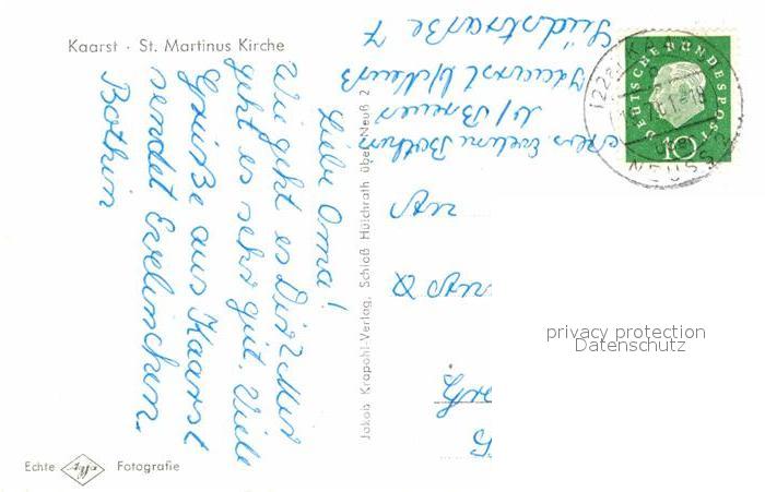 72895738 alte Postkarte Kaarst St Martinus Kirche Brunnen postalisch gelaufen Erhaltung siehe scans [FriedD77] KatCode: 11110005162016