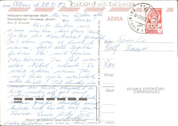 old postcard Kabardino Balkarien Hotel Itkol postalisch gelaufen Erhaltung siehe scans