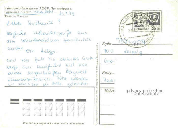 74042311 old postcard Kabardino Balkarien Hotel Tschehet postalisch gelaufen Erhaltung siehe scans [IrynaD87] KatCode: 11440