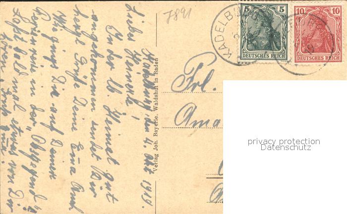 31734983 alte Postkarte Kadelburg postalisch gelaufen Erhaltung siehe scans KatCode: 11110008337125