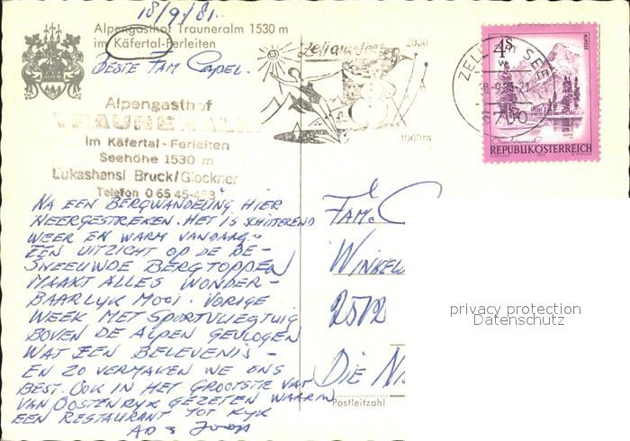 alte Postkarte Kaefertal Alpengasthof Trauneralm postalisch gelaufen Erhaltung siehe scans