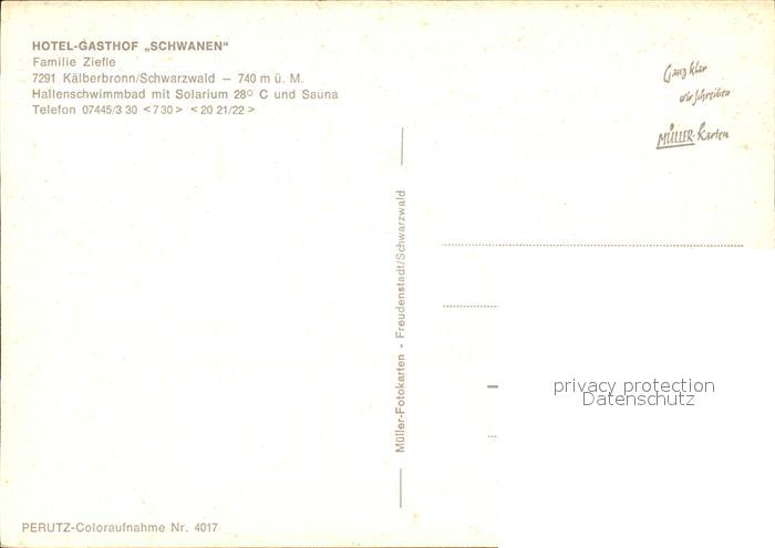 72610138 Kaelberbronn Hotel-Gasthof Schwanen postalisch nicht gelaufen Erhaltung siehe scans [PaolaD17] KatCode: 11110008237054