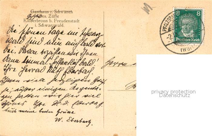 73778122 alte Postkarte Kaelberbronn Pfalzgrafenweiler Gasthaus zum Schwanen postalisch gelaufen Erhaltung siehe scans [WerneD78] KatCode: 11110008237054
