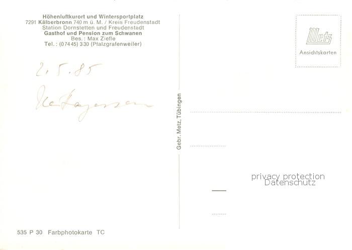 73835499 Kaelberbronn Pfalzgrafenweiler Gasthof Pension zum Schwanen postalisch nicht gelaufen Erhaltung siehe scans [WerneD78] KatCode: 11110008237054
