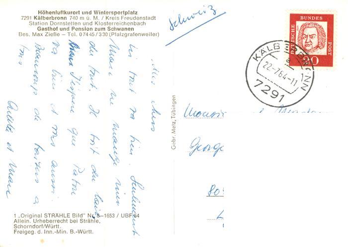 73910776 alte Postkarte Kaelberbronn Pfalzgrafenweiler Gasthof Pension zum Schwanen Gastraeume Panorama Waldpartien postalisch gelaufen Erhaltung siehe scans [WerneD78] KatCode: 11110008237054