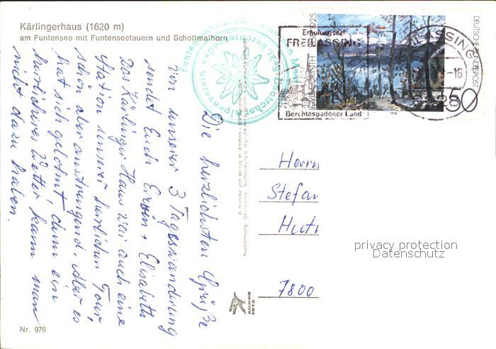 71952469 alte Postkarte Kaerlingerhaus am Funtensee mit Schottmalhorn postalisch gelaufen KatCode: 11110009172116