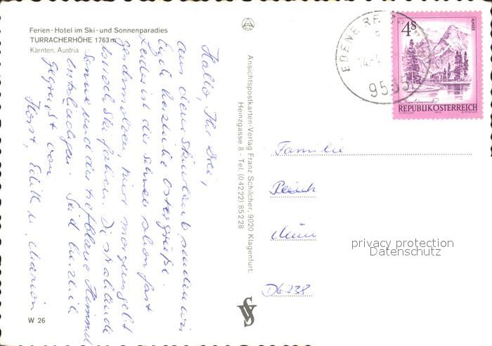 72071414 alte Postkarte Kaernten Ferienhotel Turracherhoehe postalisch gelaufen Erhaltung siehe scans KatCode: 11390211020201