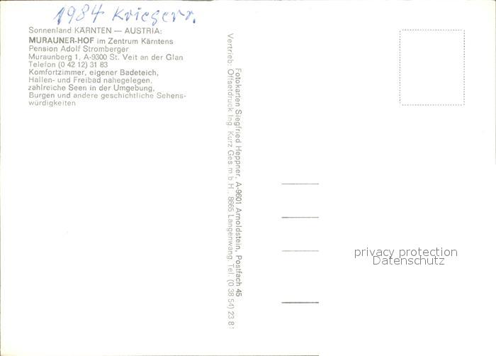 72500378 Kaernten Fremdenpension Muraunerhof postalisch nicht gelaufen Erhaltung siehe scans KatCode: 11390211020201