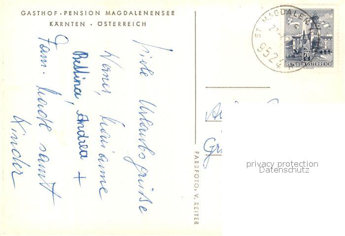 73290673 alte Postkarte Kaernten Gasthaus Pension Magdalenensee Holzboot postalisch gelaufen Erhaltung siehe scans [LiesaD40] KatCode: 11390211020201
