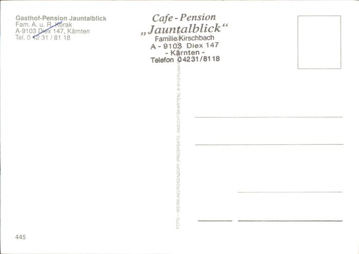 71433016 Kaernten Jauntalblick Cafe Pension Diex postalisch nicht gelaufen Erhaltung siehe scans KatCode: 11390211020201