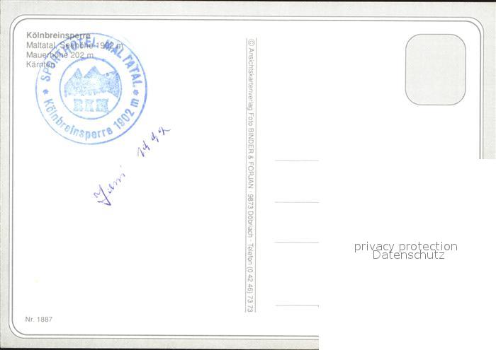 72443141 Kaernten Koelnbreinsperre Maltatal postalisch nicht gelaufen Erhaltung siehe scans KatCode: 11390211020201