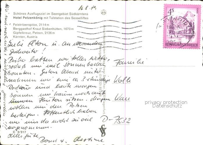 72568522 alte Postkarte Kaernten Petzen Gipfelkreuz Berggasthof Kraut Siebenhuetten postalisch gelaufen Erhaltung siehe scans [KathaD79] KatCode: 11390211020201