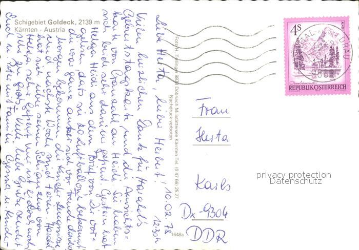 72399485 alte Postkarte Kaernten Schigebiet Goldeck Winterlandschaft postalisch gelaufen Erhaltung siehe scans KatCode: 11390211020201