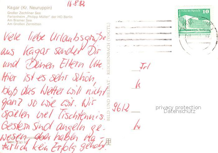 73076013 alte Postkarte Kagar Grosser Zechliner See Ferienheim Philipp Mueller HO Berlin postalisch gelaufen Erhaltung siehe scans [KathaD81] KatCode: 11110012068353