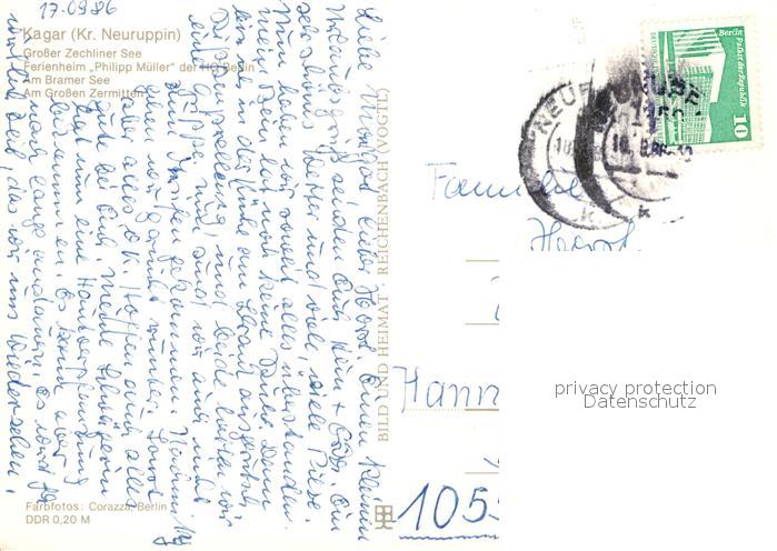 72972743 alte Postkarte Kagar Grosser Zechliner See Strand Ferienheim Bramer See Grosser Zermitten postalisch gelaufen Erhaltung siehe scans [FriedD77] KatCode: 11110012068353