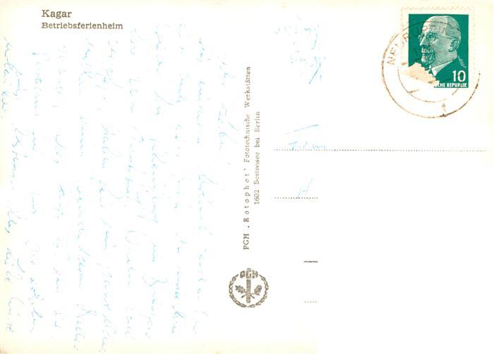 73924567 alte Postkarte Kagar Rheinsberg Betriebsferienheim postalisch gelaufen Erhaltung siehe scans [WerneD78] KatCode: 11110012068353