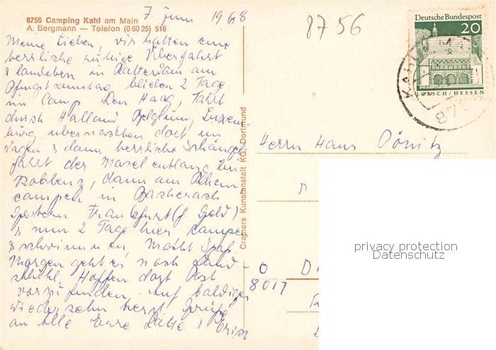73866915 alte Postkarte Kahl Main Camping Kahl Strand Tennisplatz Fliegeraufnahme postalisch gelaufen Erhaltung siehe scans [WerneD78] KatCode: 11110009671134