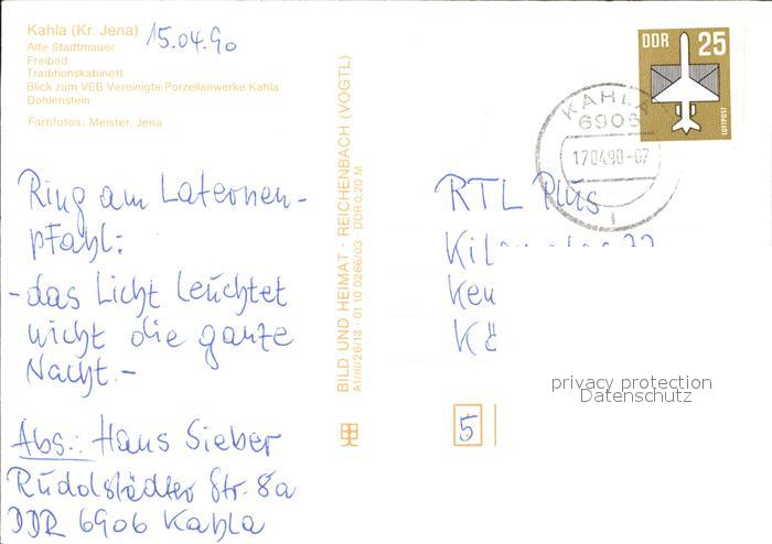 72461704 alte Postkarte Kahla Thueringen Alte Stadtmauer Freibad Traditionskabinett Dohlenstein postalisch gelaufen Erhaltung siehe scans KatCode: 11110016074044