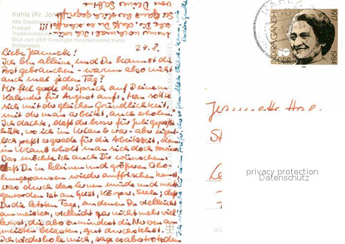 72627788 alte Postkarte Kahla Thueringen Alte Stadtmauer Freibad Traditionskabinett VEB Porzellanwerke Kahla Dohlenstein postalisch gelaufen Erhaltung siehe scans [WerneD78] KatCode: 11110016074044