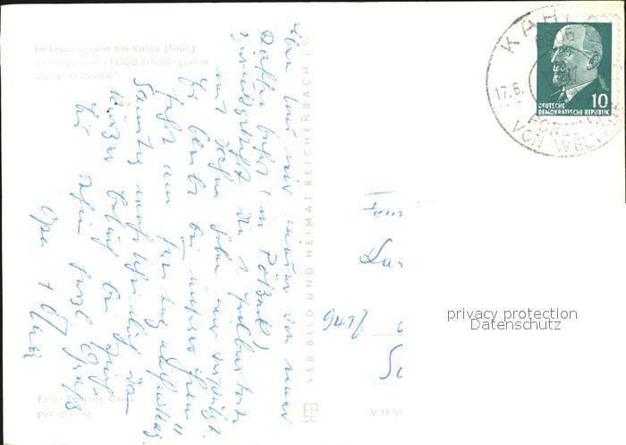 72474632 alte Postkarte Kahla Thueringen Im Leubengrund mit Erholungsheim Jacques Decour postalisch gelaufen Erhaltung siehe scans KatCode: 11110016074044