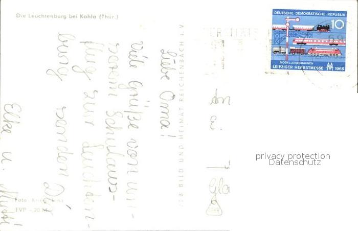 72357147 alte Postkarte Kahla Thueringen Leuchtenburg postalisch gelaufen Erhaltung siehe scans KatCode: 11110016074044