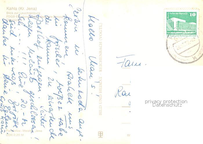 73061830 alte Postkarte Kahla Thueringen Leuchtenburg FDGB Erholungsheim uebersicht postalisch gelaufen Erhaltung siehe scans [FriedD77] KatCode: 11110016074044