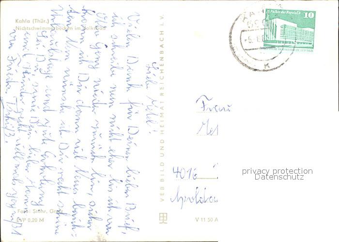 72016082 alte Postkarte Kahla Thueringen Schwimmbad postalisch gelaufen Erhaltung siehe scans KatCode: 11110016074044