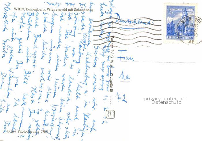 72839380 alte Postkarte Kahlenberg Wien Wienerwald mit Schneeberg postalisch gelaufen Erhaltung siehe scans [FriedD77] KatCode: 11390130090001