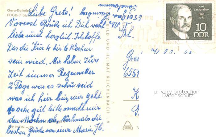 72698610 alte Postkarte Kaimberg Diaetsanatorium postalisch gelaufen Erhaltung siehe scans [LiesaD40] KatCode: 11110016052000
