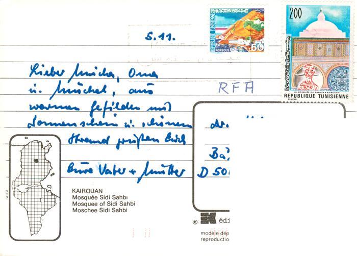 73944967 old postcard Kairouan Qairawan Tunesie Mosquée Sidi Sahbi postalisch gelaufen Erhaltung siehe scans [FriedD77] KatCode: 18520