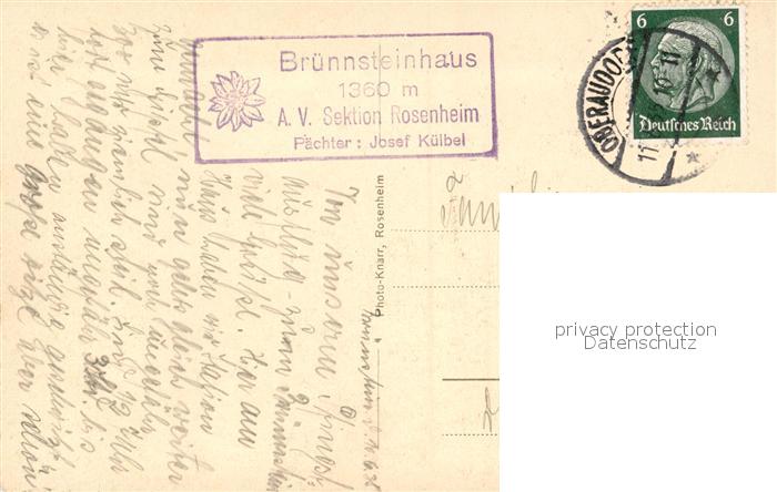 43257233 alte Postkarte Kaisergebirge Bruennsteinhaus postalisch gelaufen Erhaltung siehe scans [KathaD81] KatCode: 11390335070513