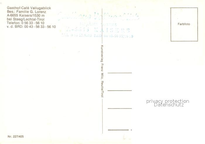 73047874 Kaisers Gasthof Cafe Vallugablick postalisch nicht gelaufen Erhaltung siehe scans [KathaD81] KatCode: 11390331070819